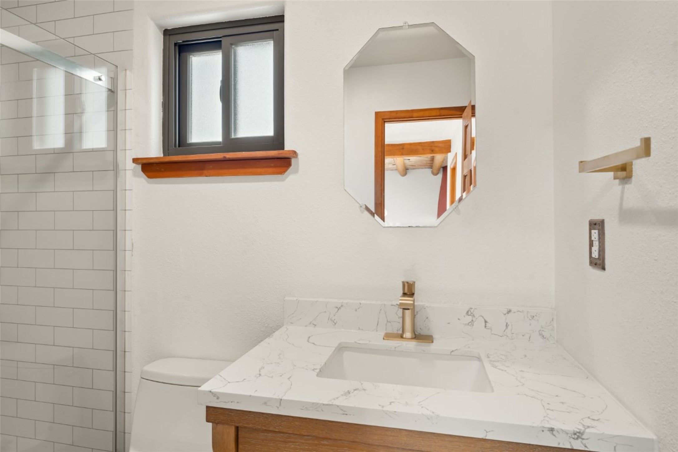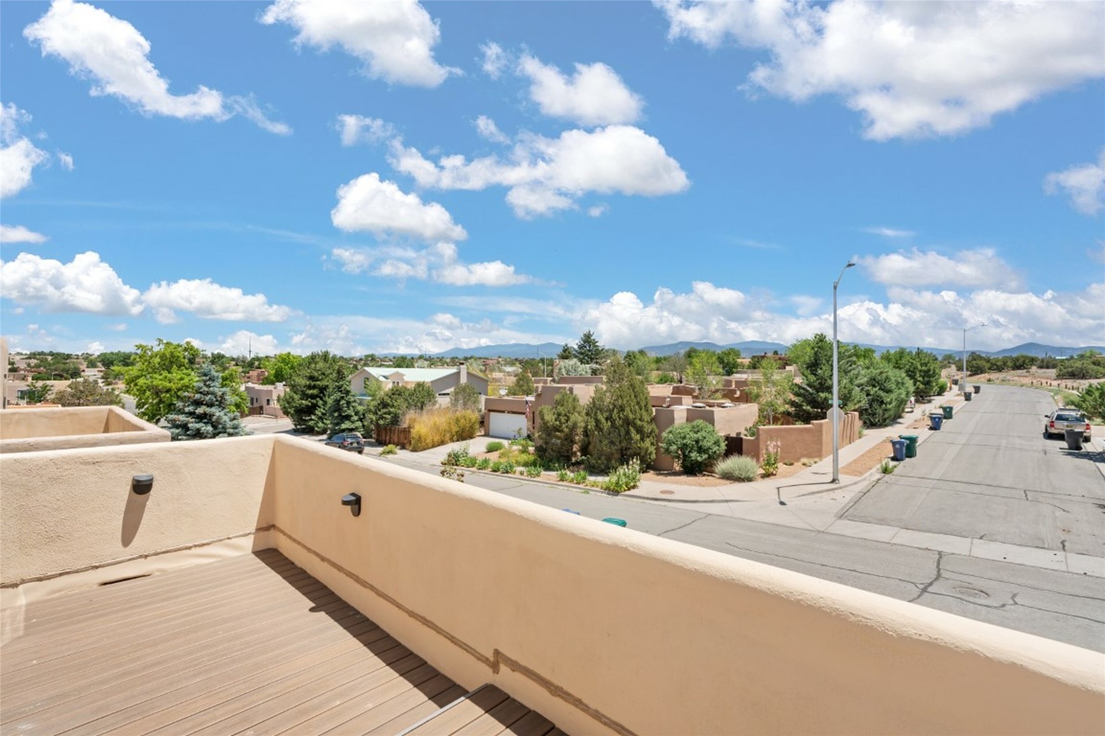 Welcome to Casa Nizhoni! A fabulous tri-level home in the desirable Pueblos Del Sol Neighborhood. All three bathrooms have been remodeled w/warm modern tones and marble countertops. The large eat-in kitchen features a gas stove, quartz countertops and opens to a large dining room space for entertaining. The living room has a gorgeous Kiva featuring a soaring 25 foot ceiling and vigas. Large glass doors look out onto the spacious backyard and flagstone patio. Fabulous new wood floors in the upper bedrooms are warm & modern. The main bedroom features a balcony with sweeping mountain views and a flex space that is also a third bedroom. The house sits on one of the largest lots in Pueblos Del Sol and has plenty of space for outdoor entertainment and gardening. Pueblos Del Sol features extensive walking trails that are maintained by the HOA.