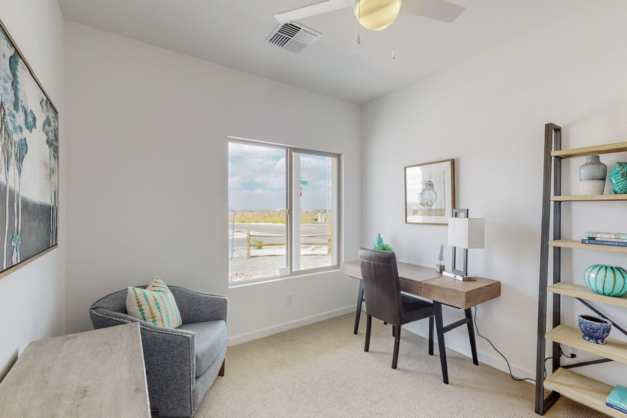 trails for residents to enjoy. Introducing the El Sol plan, a charming 3-bedroom, 2-bathroom residence, with picturesque Sangre de Cristo Mountain views from the back yard and portal. Enter to find an expansive great room with vaulted ceilings, ideal for relaxation or hosting gatherings, bathed in natural light